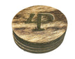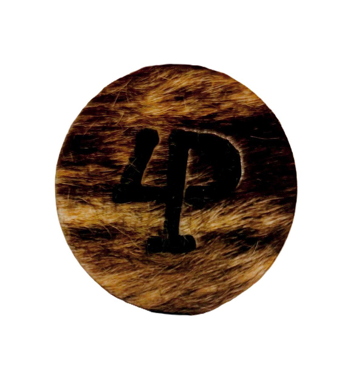 Genuine Cowhide coasters with solid wood backing. The brand is laser engraved into the cowhide for a detailed and permanent picture. Coasters measure 4" in diameter and about 5MM thick. Price is for a set of 4 and as always, shipping is free! Cowhide will vary from pictured, but will be from a brindle hide. Please email your desired brand. Makes a great inexpensive gift or rodeo award.